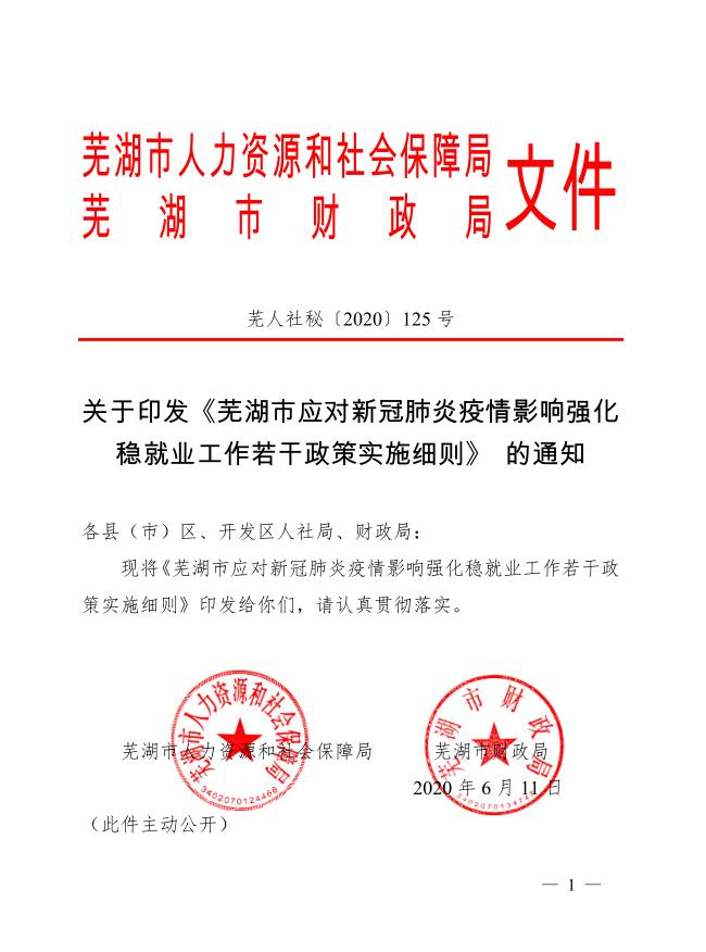 關(guān)于印發(fā)《蕪湖市應(yīng)對新冠肺炎疫情影響強化 穩(wěn)就業(yè)工作若干政策實施細則》的通知